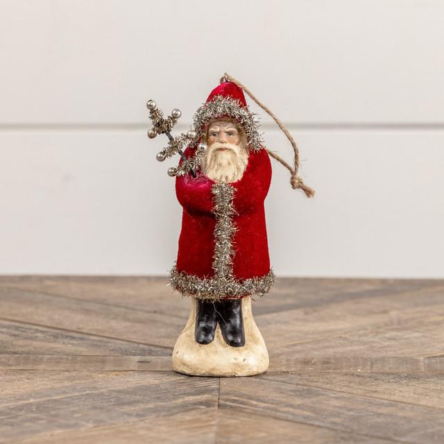 This beautiful vintage style Wine Velvet Belsnickle Ornament is a timeless figurine to display on your tree or sitting on a tray /shelf for the holiday season. Handcrafted details. Available in 3 sizes.
