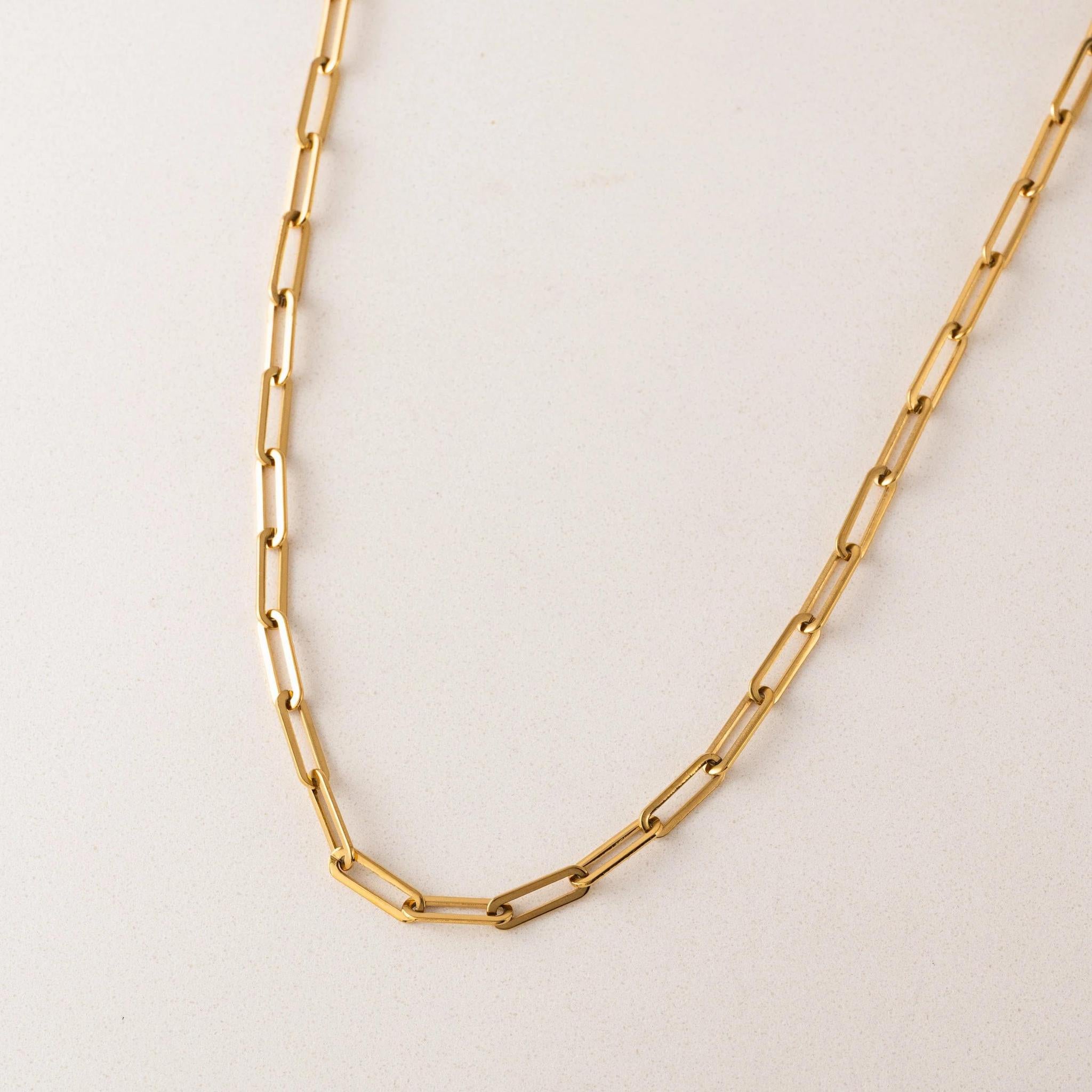 Big chain energy. This waterproof gold paperclip necklace does all the work for you—chunky, sleek, and made to turn heads (and survive the pool).
