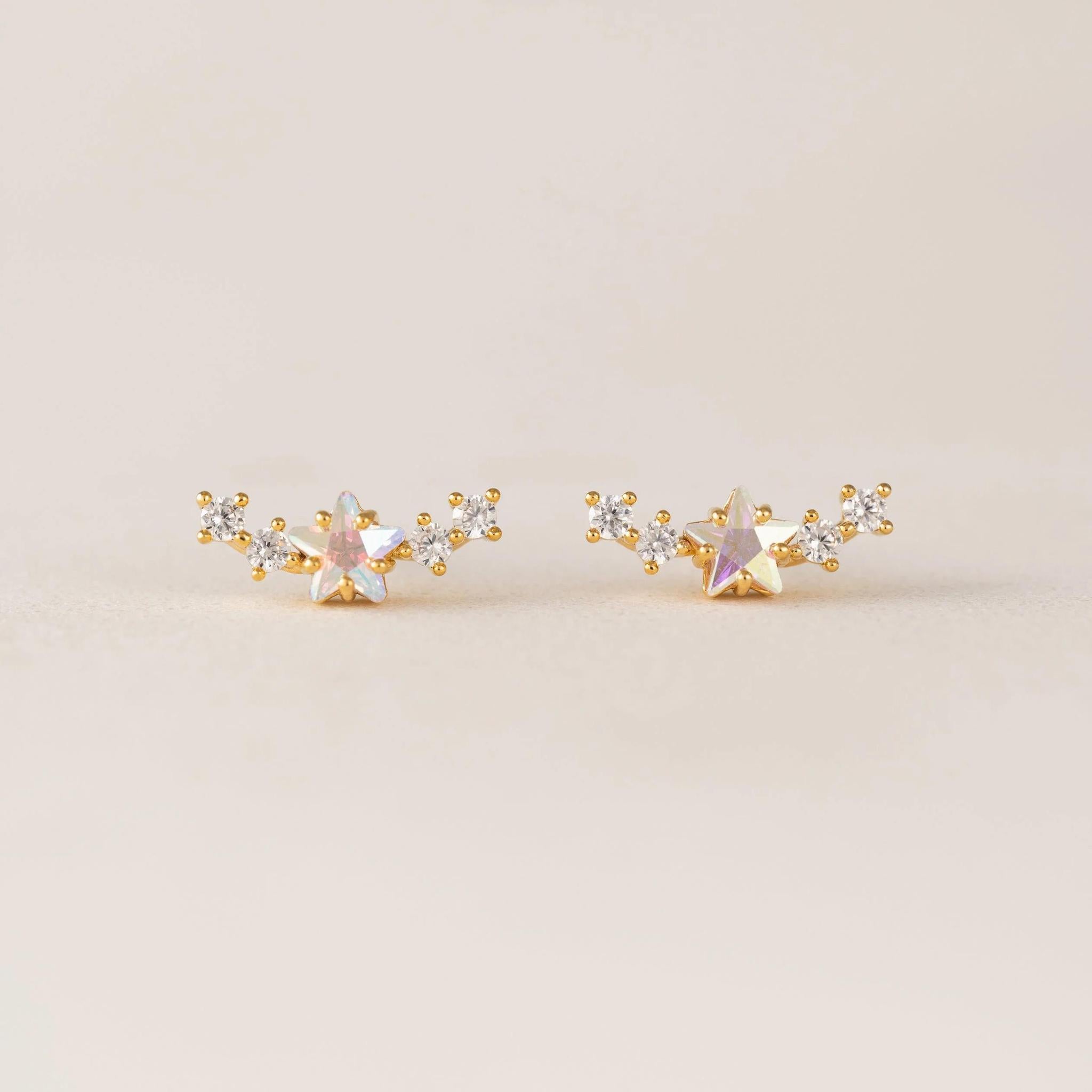 Tiny stars, major sparkle. These celestial-inspired climber earrings feature a trail of cubic zirconias that catch the light just right. Lightweight, luminous, and perfect for everyday orbit.
