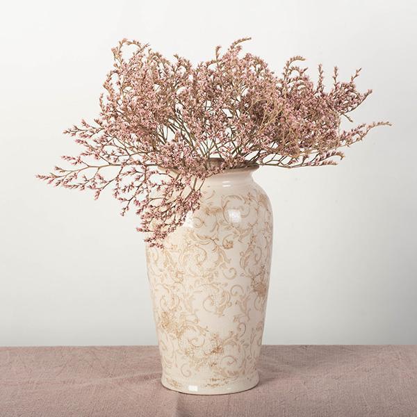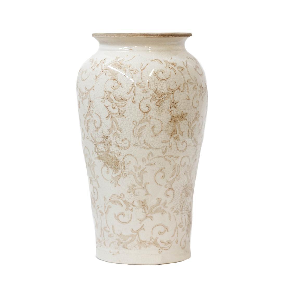 This Tall Cream & Taupe Ceramic Vase features a french floral design and smooth ceramic material. Perfect for a sideboard table or mantle!