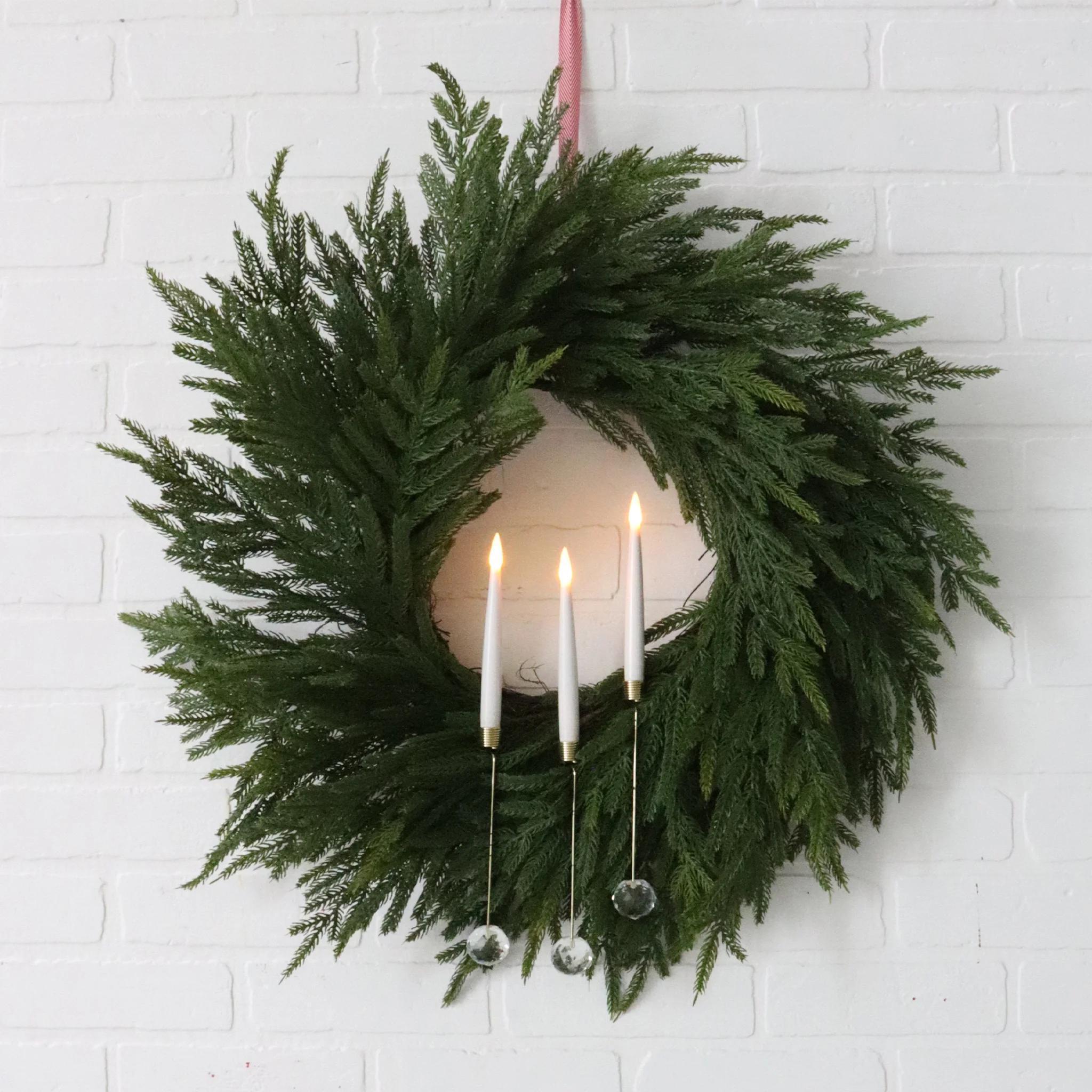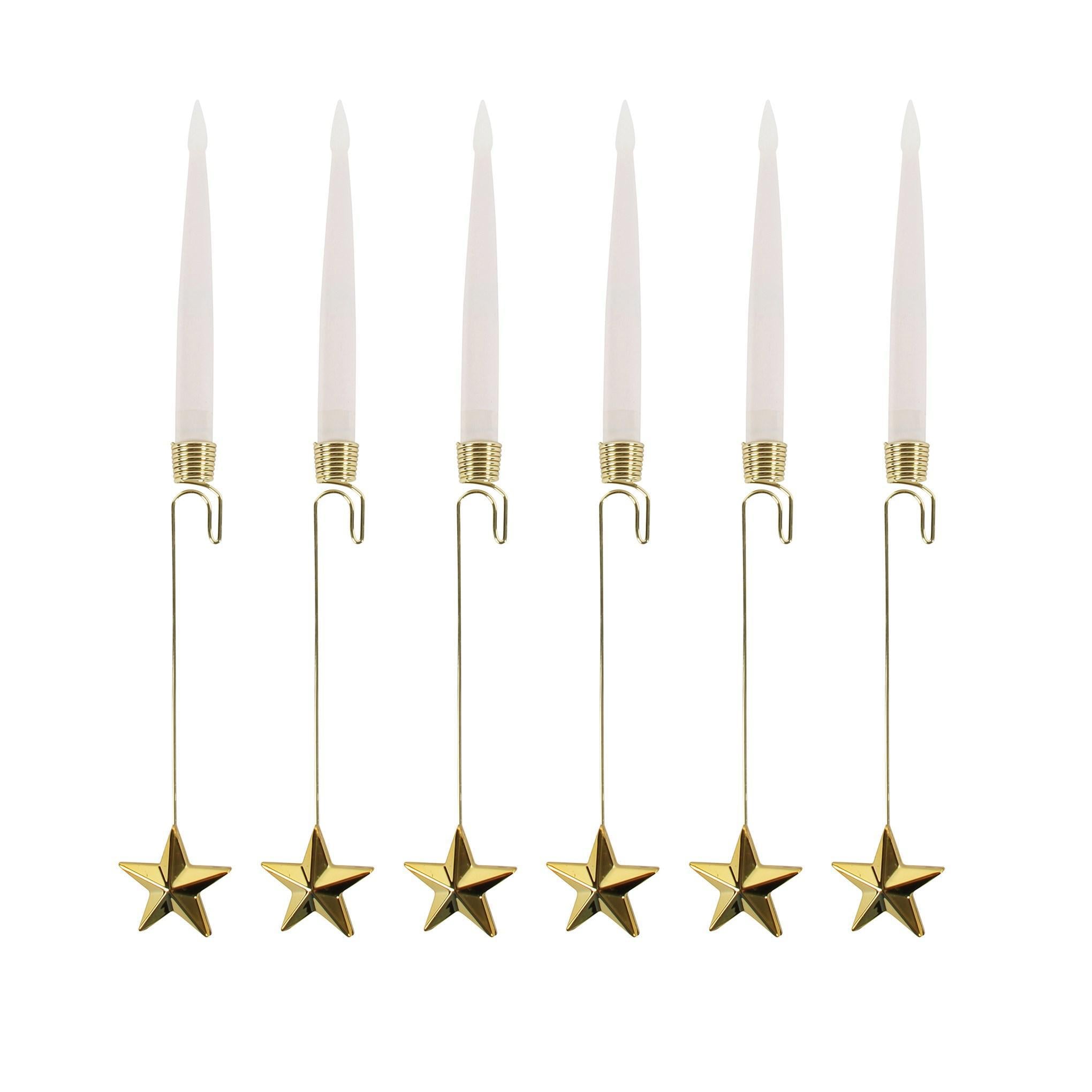 The hand-finished ornament hook is ideal for adorning wreaths or garlands. The led candle features a soft, warm flickering glow.