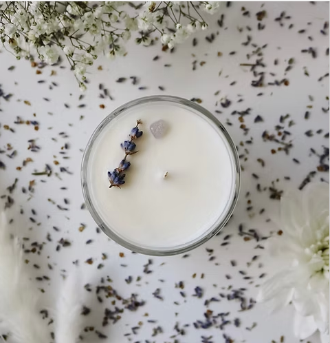 CANDLE TOPPER: Blue chalcedony stones and lavender