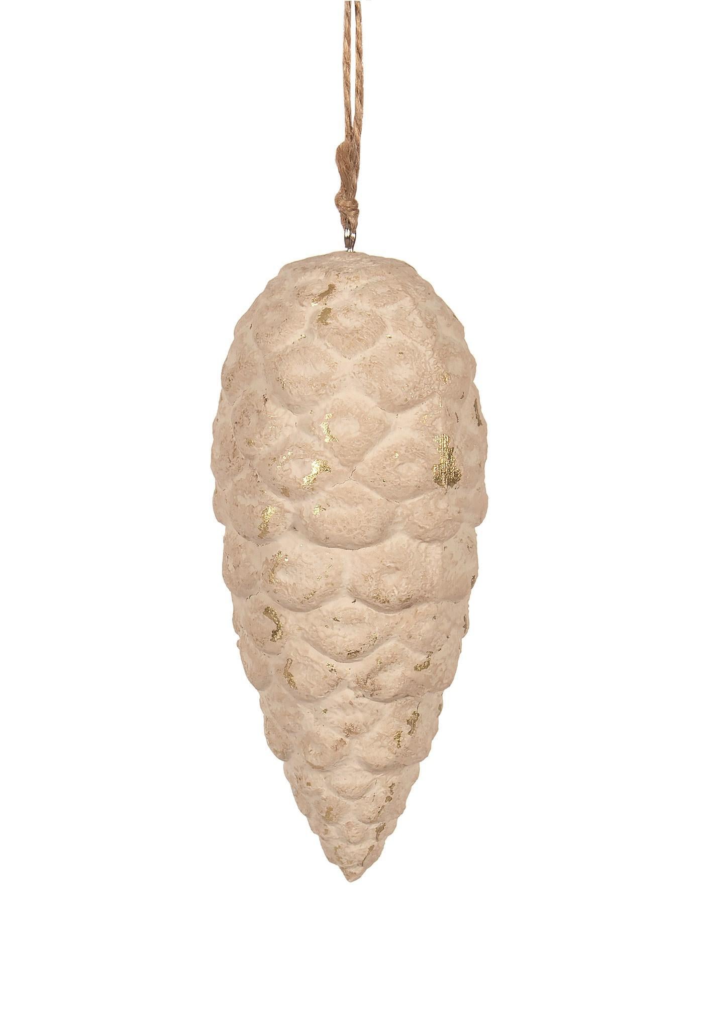 Antique ivory wood pinecone ornament with gold foil. Available in 2 sizes (sold separately).
