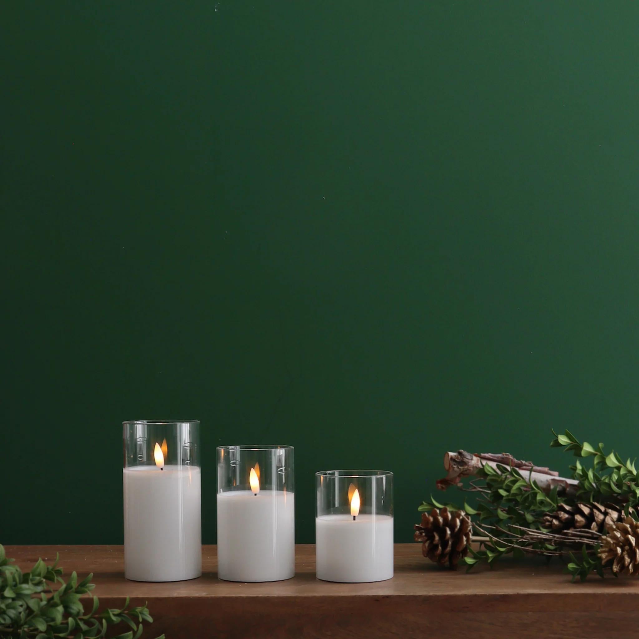 This assorted led display contains wax based led candles in glass hurricanes with warm led lights – 3 sizes are included in this assortment. Batteries are not included. Sold separately.