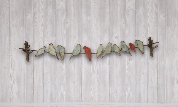 A colourful metal bird perched on a wire adds a touch of rustic charm and whimsy to any wall. DETAILS: