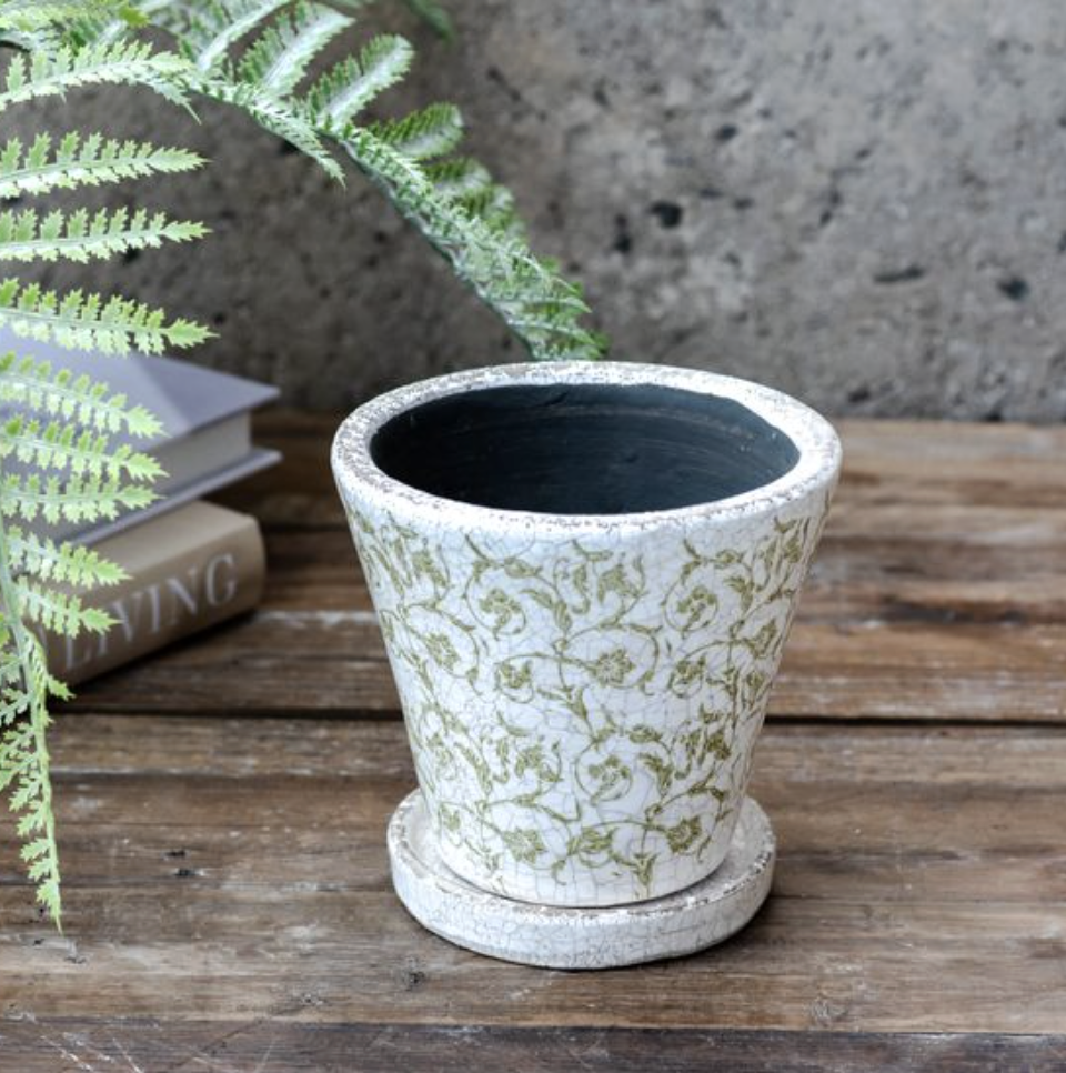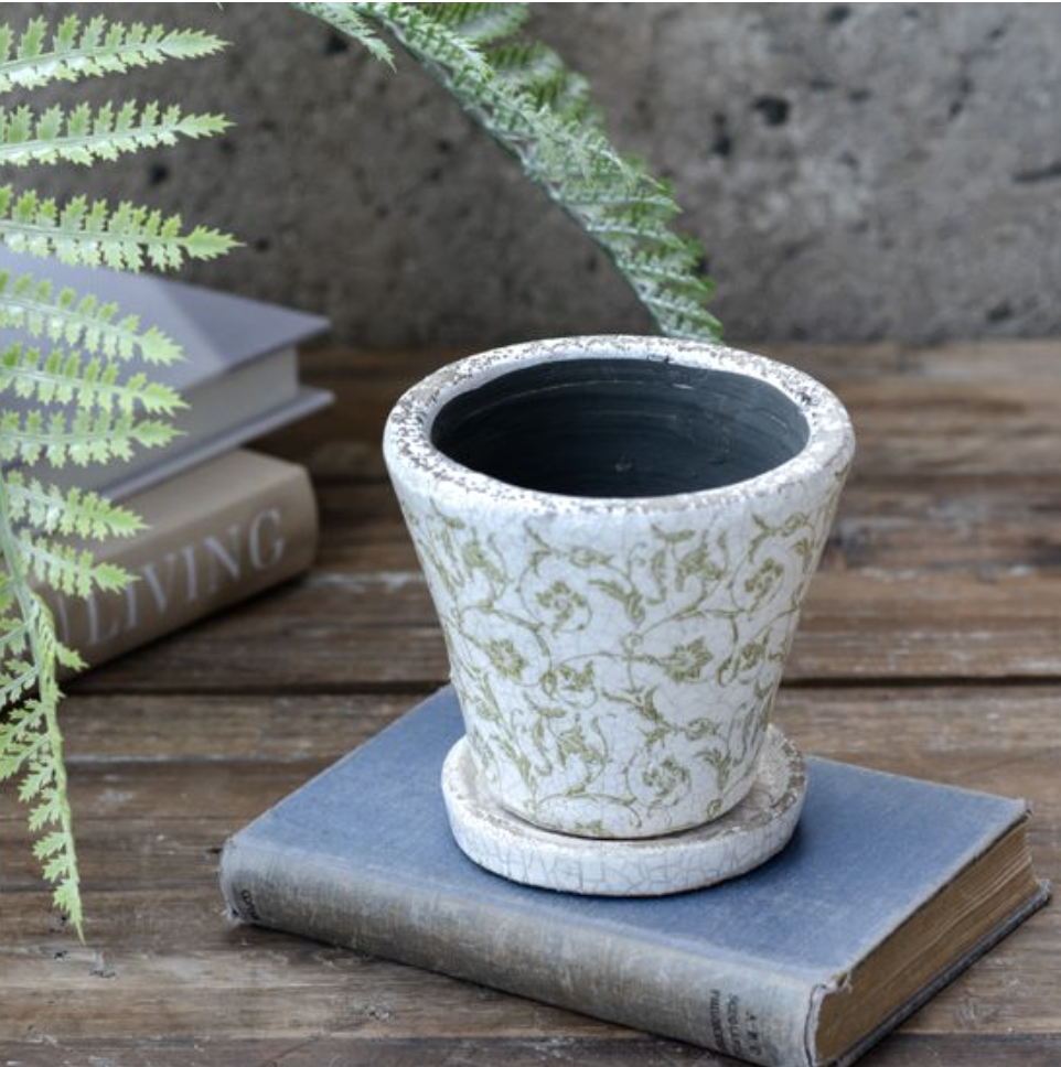 Perfect for displaying small plants, herbs, faux greenery, or floral arrangements, this versatile pot looks lovely on windowsills, shelves, coffee tables, or kitchen counters. Its classic design pairs beautifully with cottage, farmhouse, French country, and vintage décor styles.