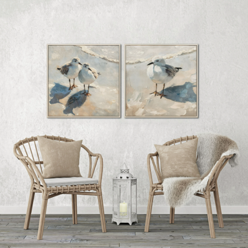 Hand embellished canvas art in a White Floating Frame. Sold separately.
