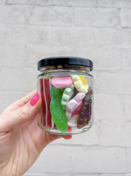 INGREDIENTS: Sugar, Glucose syrup, Corn starch, Water, Acetic acid, Lactic acid, Malic acid, Pectin, Natural flavors, Contains Gelatin, Contains Gluten, Contains Traces of Nuts