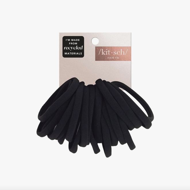 Kitsch Recycled Nylon Elastics are an everyday must-have! Consciously created from recycled materials, these elastics are every ponytail's perfect hair basic & eco-friendly too! These elastics glide gently through hair for a tight all-day hold while being kind on your hair and the environment.