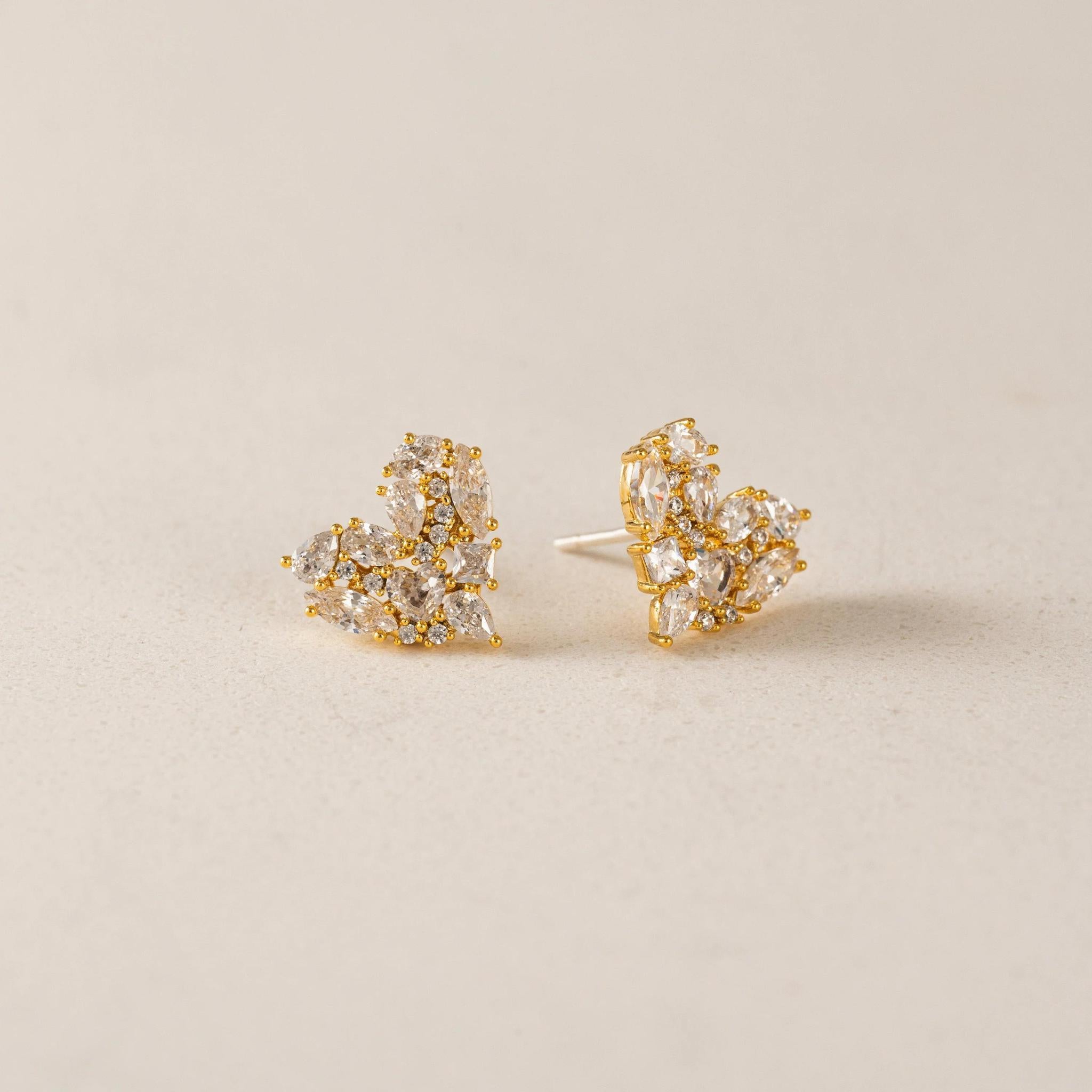 Like the originals, but make it flirty. These petite heart studs bring all the charm of the statement version—vintage-inspired curves, asymmetrical sparkle, and that sculptural feel—just in a more wearable, everyday size. Made with electroplated brass and cubic zirconia so you still get plenty of shine, no effort required.