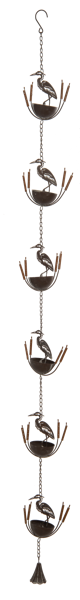 A graceful metal heron rain chain that guides rainwater down in style while adding an elegant, coastal-inspired touch to your outdoor space.