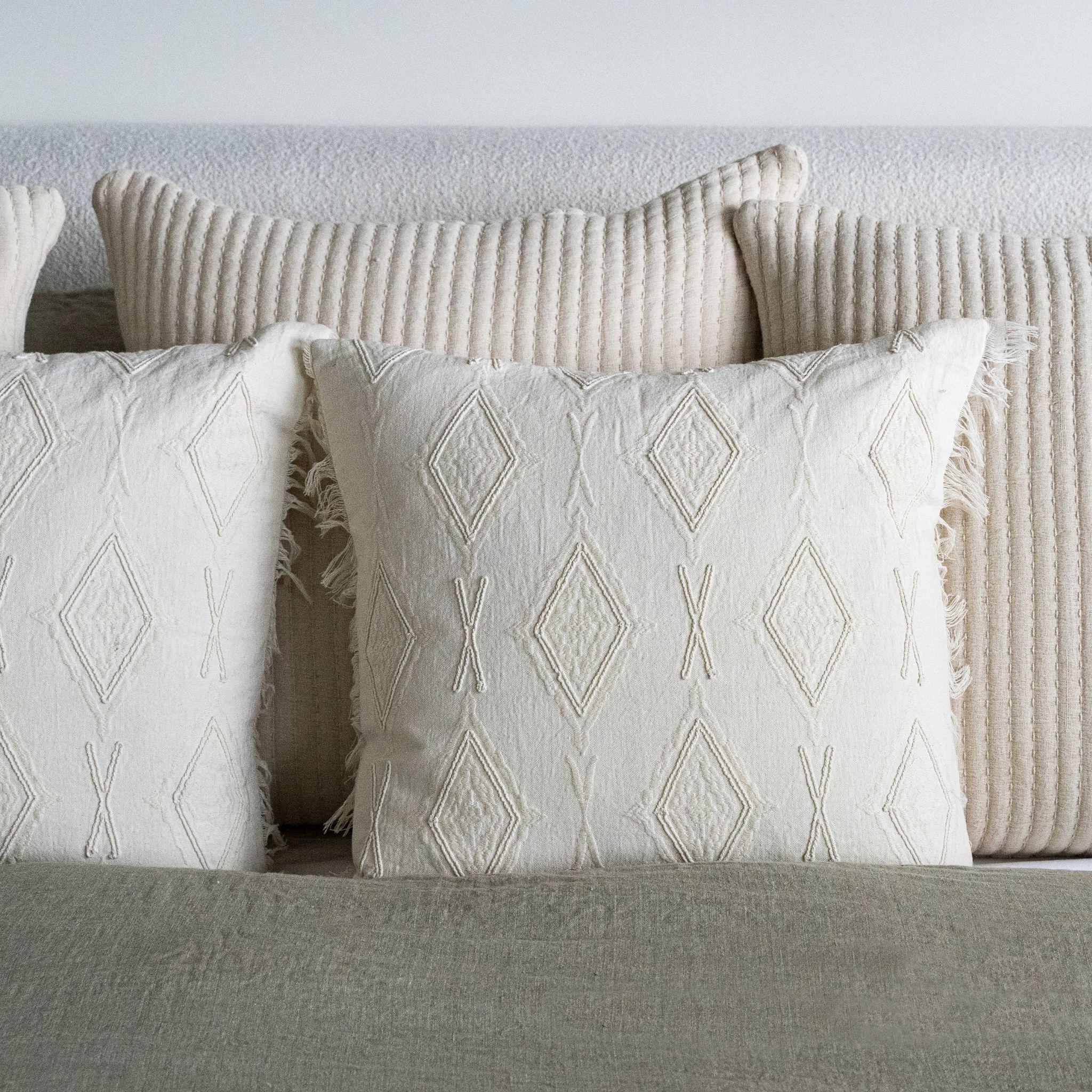 The Kantha-Stitch Pillow is a true testament to the beauty of hand work and traditional craft. Layers of stone-washed 100% cotton voile are sewn together with lines of hand kantha stitching to create extremely soft bed textiles with a comfortable, stretchy feel. Extremely livable and soft with a comfortable, stretchy feel, they add texture and warmth to sofas, reading nooks and beds alike. Complete with a premium feather down filler for fabulous fluff factor and comfort you'll want to sink your head into. Pre-shrunk - 2-3% shrinkage may occur during first wash.