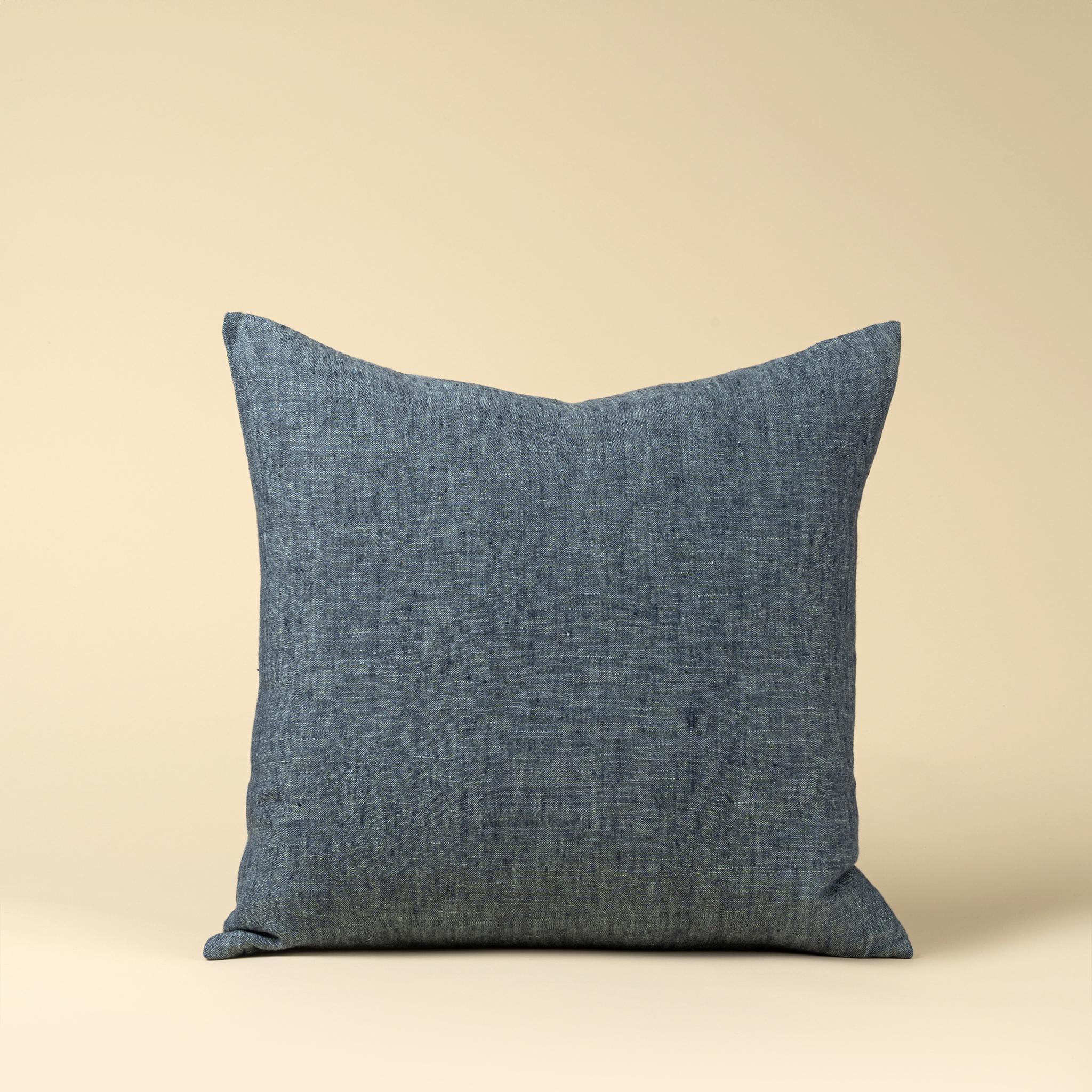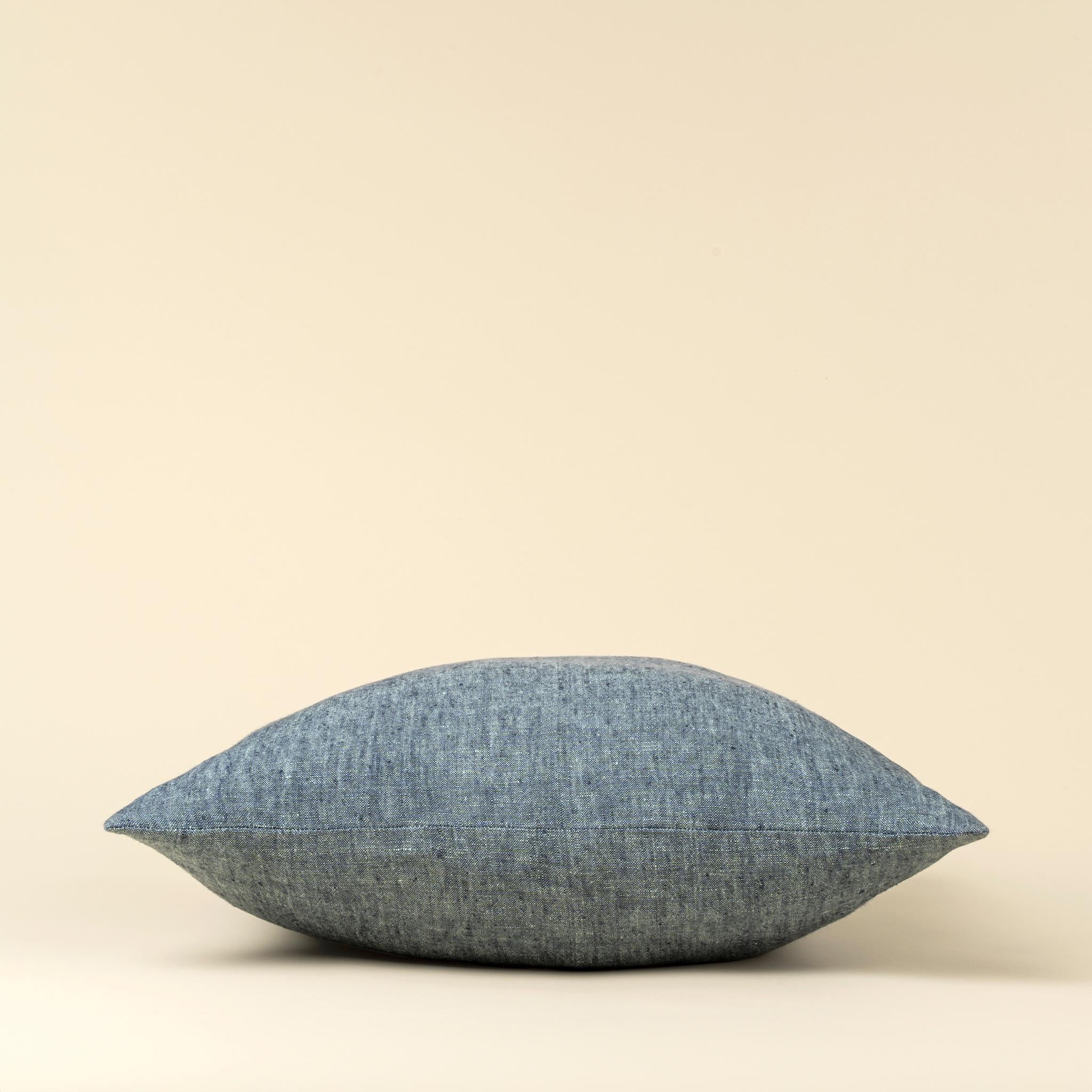 20x20 Linen Chambray Pillow, Denim, An Artisan Made Accent Pillow in Dimensional