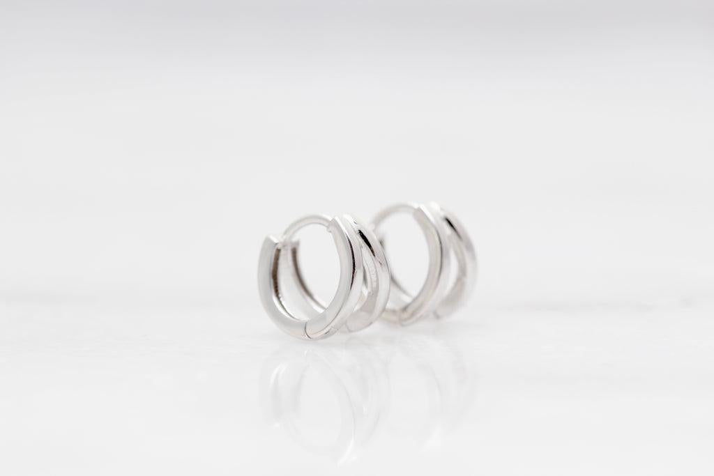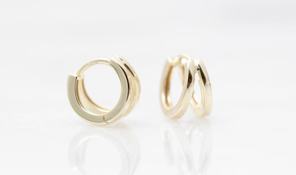 These petite huggies give the illusion of a double huggie going through a single piercing. Love the simplicity of these huggies. Available in sterling silver and gold. These measure approx 12mm.
