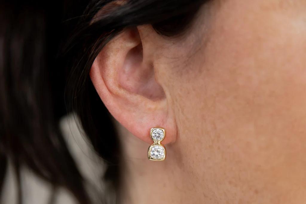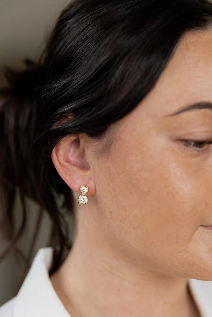 Modern bezel set duo, perfect for every day work. These are gold vermeil and measure approx 15mm in length.
