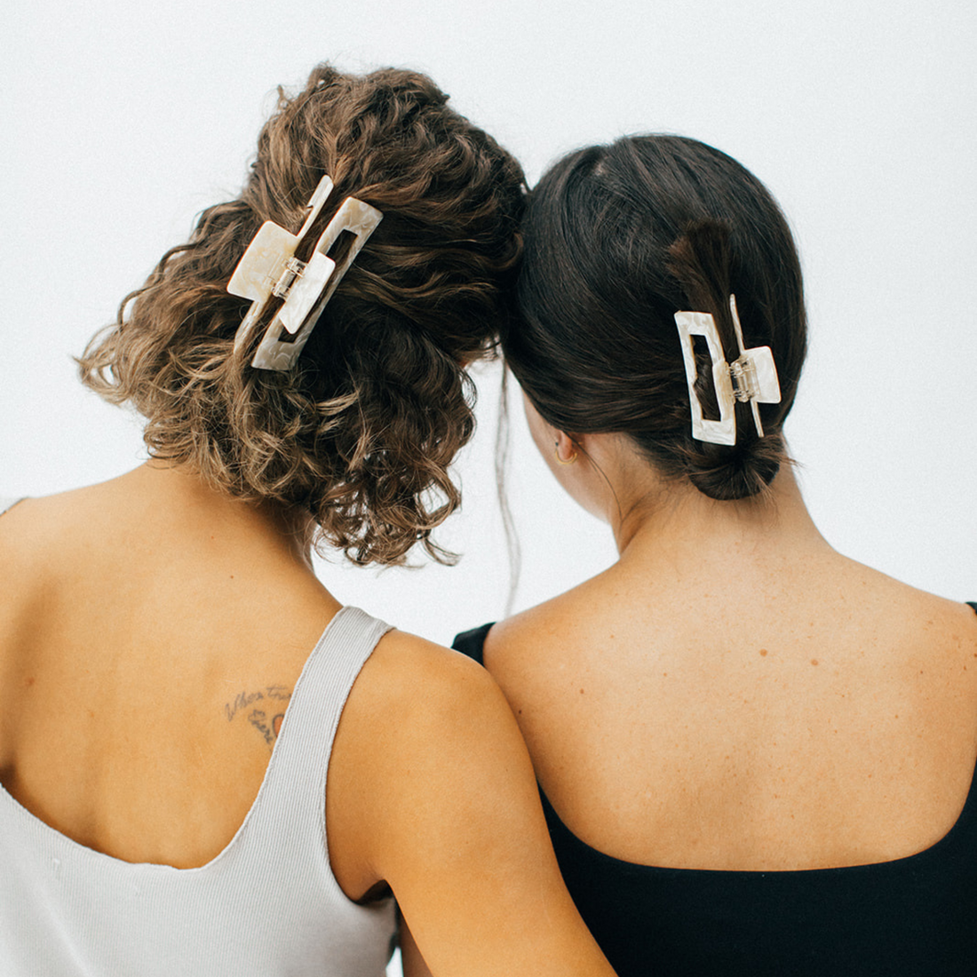 "I’ve been eyeing up Supercrush clips since they first came out but have been an avid scrunchie-wearer for years now and wasn’t sure I was up for a change… I bought the light tortoise and pearl duo and LOVE THEM. The HOLD. ALL DAY. NO ADJUSTING. Walking, running for the bus, racing to the next zoom meeting, my hair is held by these clips without the need for touch-ups throughout the day. 100% would buy again."-B