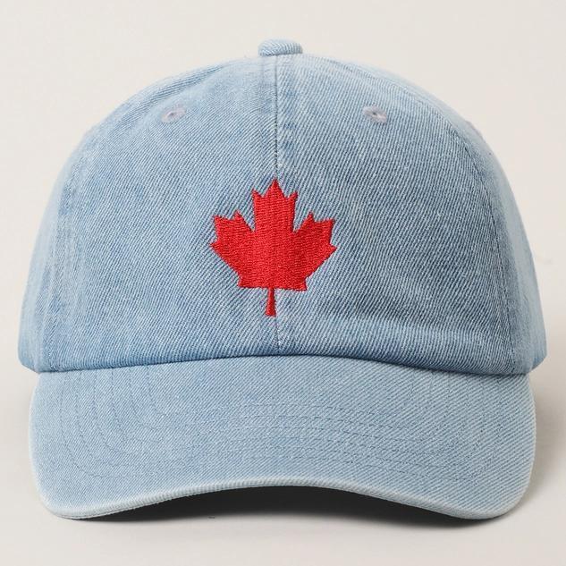 Canadian Maple Leaf Embroidered Denim Cap